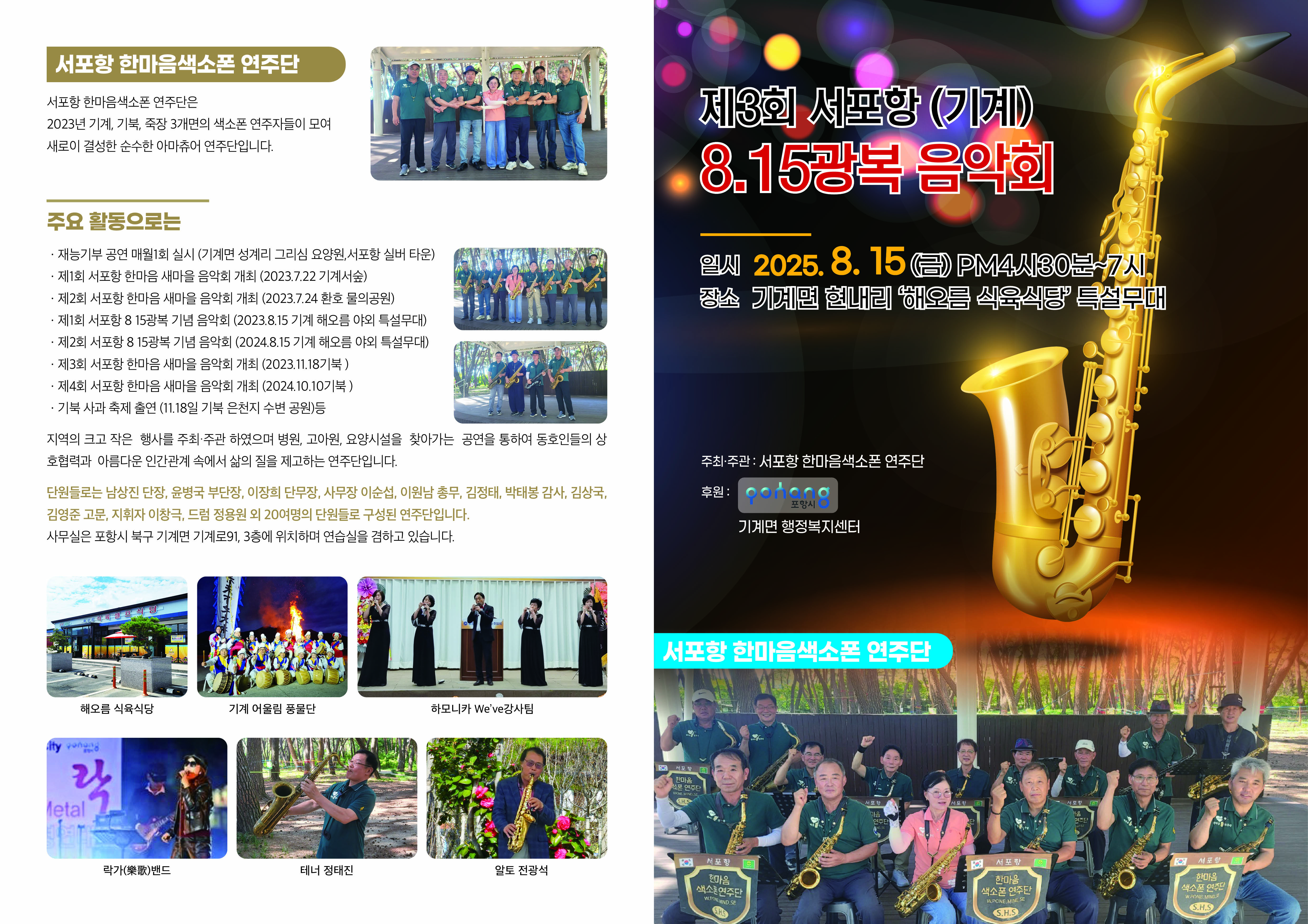 | 영일만친구 (광복 80주년기념 / 제3회 서포항 8.15광복 기념음악회 ) / "어울림 정" 테너 색소폰 합주연주 (2) | 2025.08.17 |